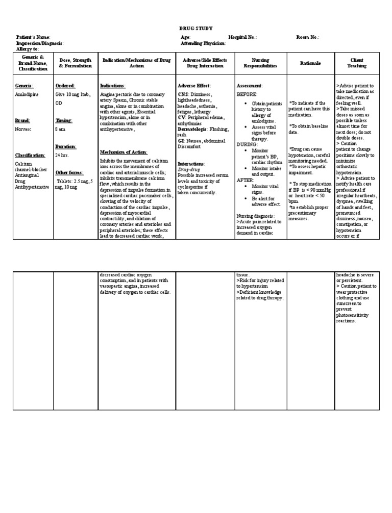 Amlodipine ati medication card ACTIVE LEARNING TEMPLATES