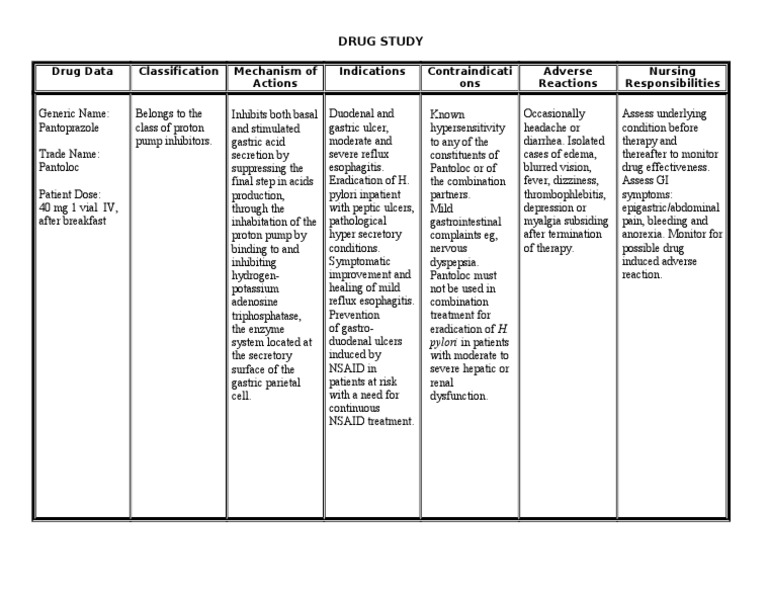 Pantoprazole Drug Study PDF Pharmacology Medicine