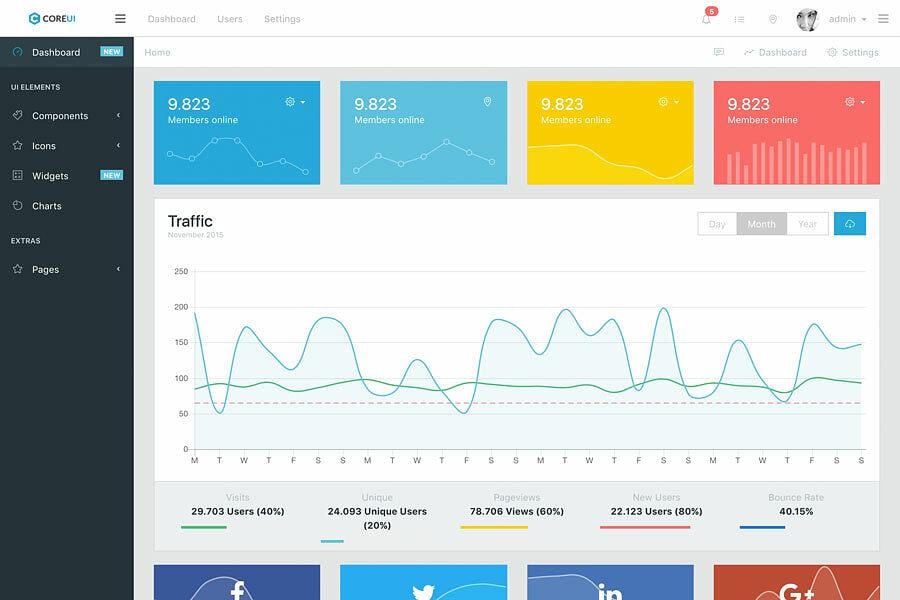 CoreUI Free Angular 2+ Admin Template Dashboard design template
