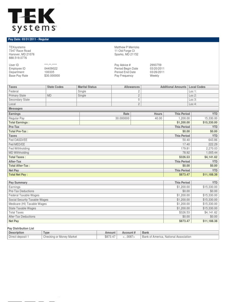 Florida Self Employee Paystub Sample Pay Stub Com Gambaran