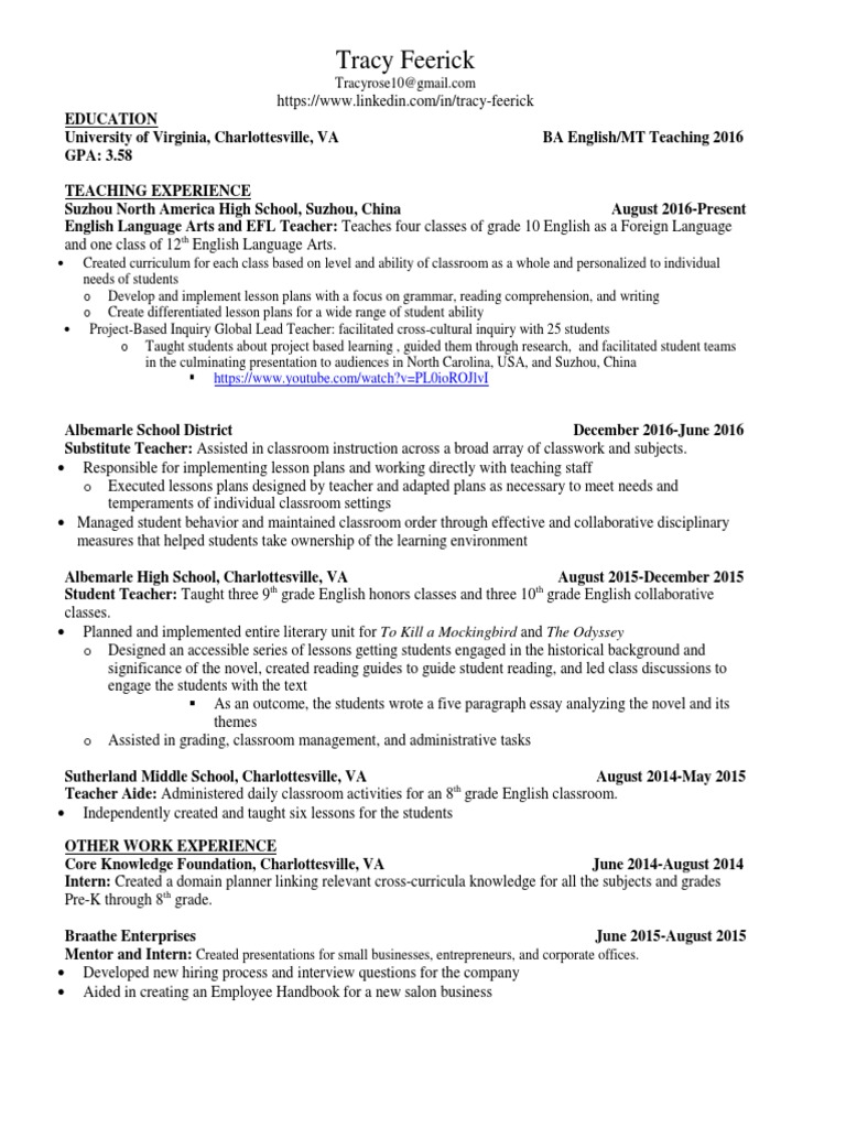 resume Project Based Learning Lesson Plan