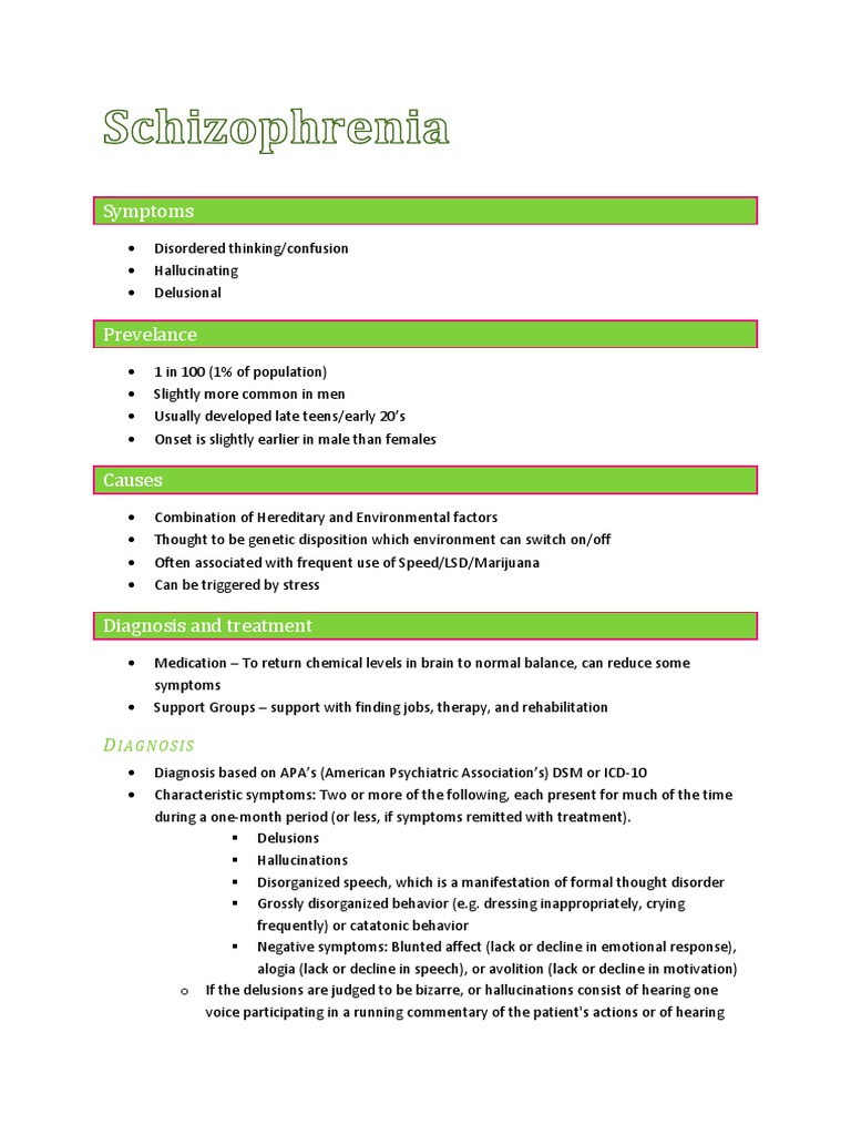 Schizophrenia Fact Sheet VCE Psychology Units 1/2 PDF